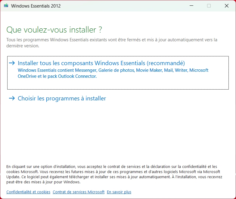 Movie Maker n’est pas intégré à Windows 10 ou Windows 11. Il faut donc le télécharger et l’installer manuellement :