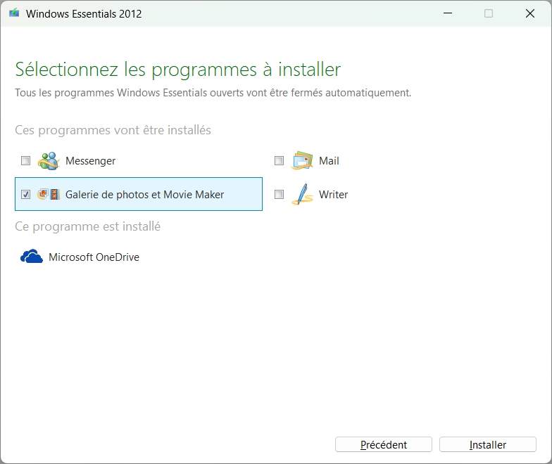 - Windows Essentials intègre plusieurs programmes. Lors du processus d’installation, cochez uniquement Movie Maker pour ne pas encombrer inutilement votre ordinateur.