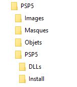 - Dézipper le fichier PSP5.zip au même endroit (clic droit Extraire tout...), on obtient un dossier PSP5 avec dedans l'arborescence suivante :
