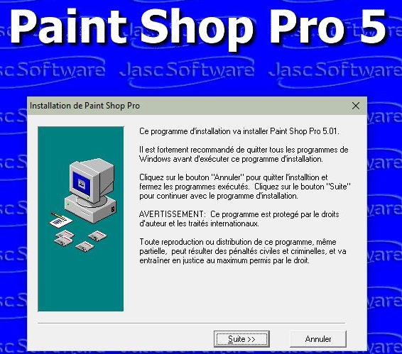 Paint Shop Pro 5 à télécharger ici (clic sur l'image de palette au centre) :