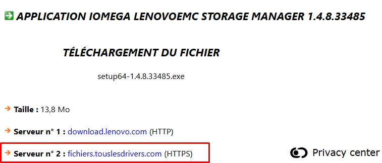 Pendant qu'il démarre, télécharger le logiciel de gestion. Ne pas chercher chez Iomega mais chez Lenovo qui a racheté la marque :