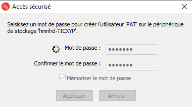 Immédiatement est proposé de créer un utilisateur en saisissant un mot de passe. (Ce nom est lié au compte sur le PC utilisé)