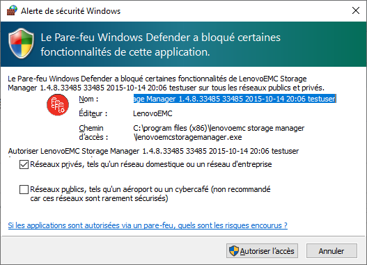 A la question du pare feu : Autoriser l'accès